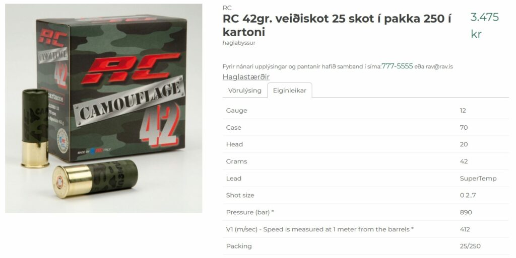 Mjög vinsæl veiðiskot eru t.d. Camouflage 42 gr. nr 2 eða 4